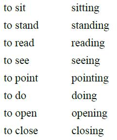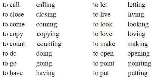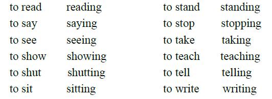 (a) Closing,coming,having,letting,living,loving,making,putting,shutting,sitting,stopping,taking,writing.