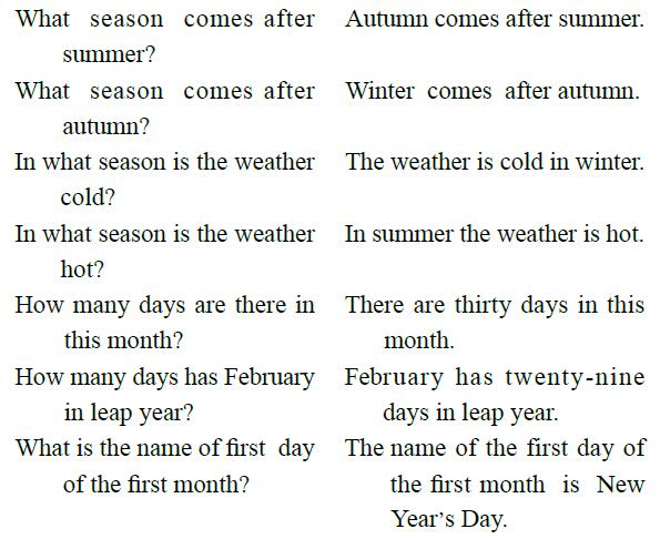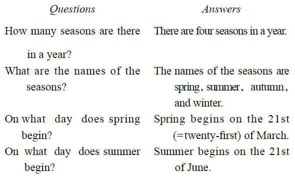 2. What are the names of the four seasons?