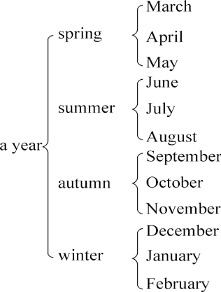 four months of the year have thirty days each. Seven other months have thirty-one days each. february,the second month of the year,has twenty-eight days,except in leap year. february in leap year has one day more.