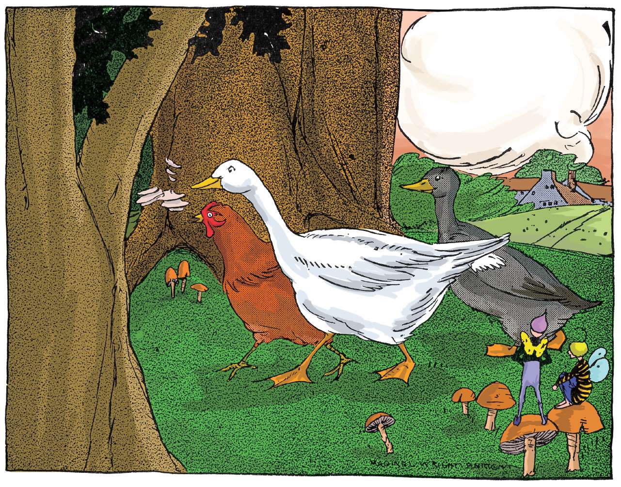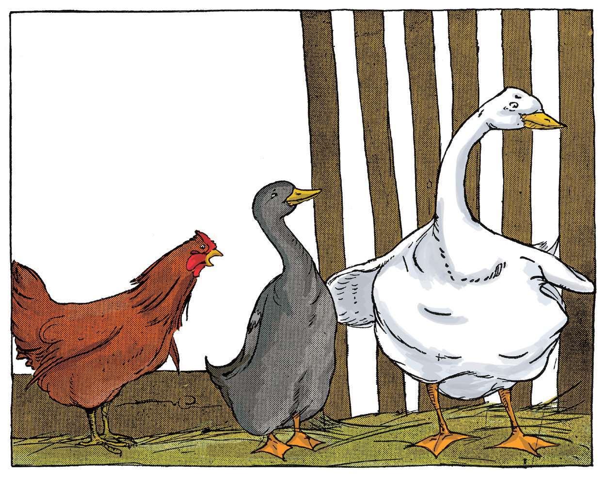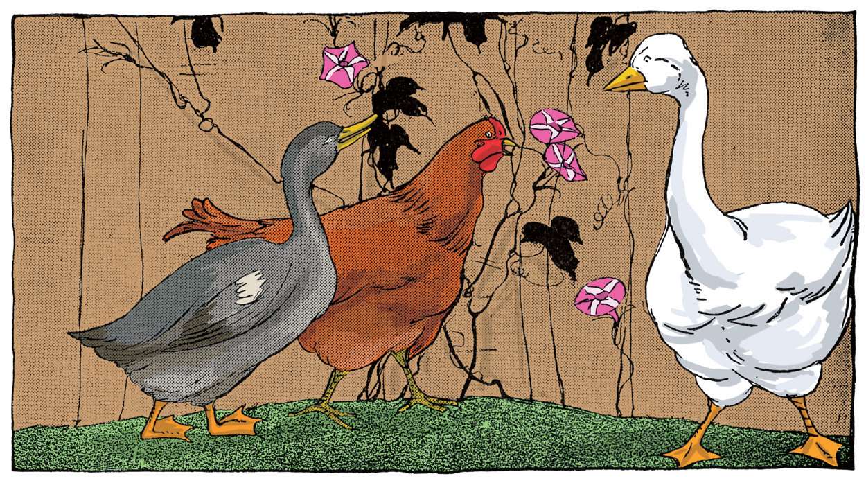 White Goose said, “S-s-s! Good morning, Red Hen.”