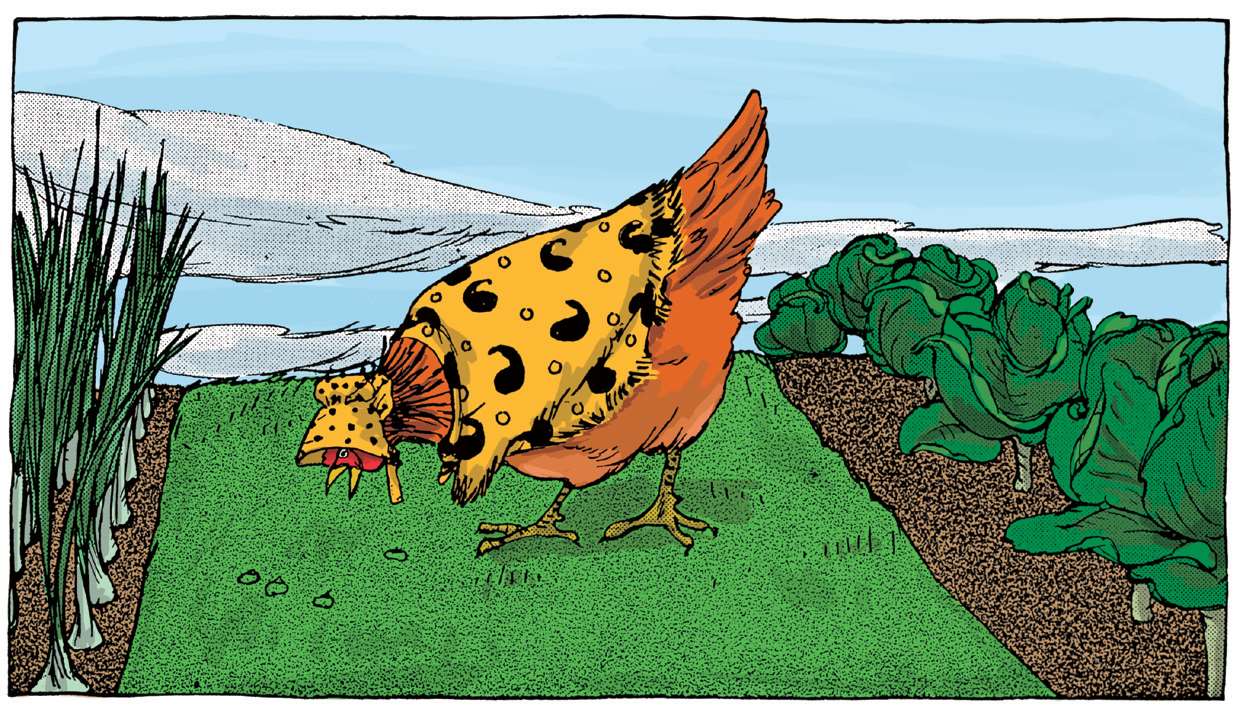 Red Hen said, “Oh, I am so frightened! There is something white in my nest.”