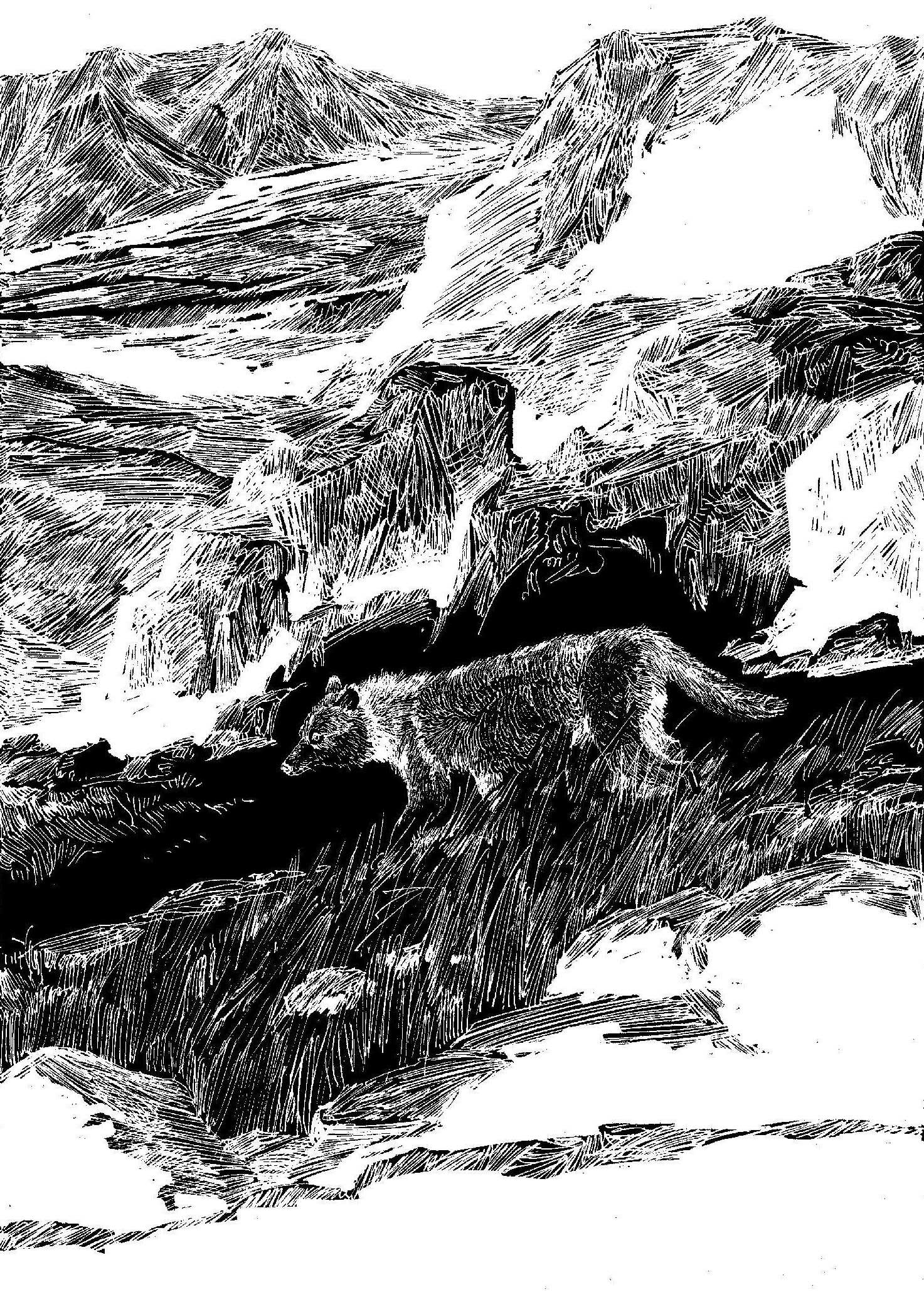 天渐渐地黑了,近处的灌木林和远处的草原都变得轮廓模糊,最后被漆黑的夜吞噬了,只有身后那座雪峰在深蓝色的夜空中散发着白皑皑的光亮。紫岚满腔的希望终于彻底冷却。凭经验它晓得,天一黑,胆小的食草类动物就再也不敢光顾臭水塘了。唉,看来,今夜又要瘪着肚皮忍着饥饿度过了。
