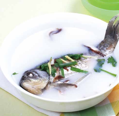 1. 将鲫鱼去鳞、内脏,洗净;香菇用水泡发,去蒂,洗净切丝。