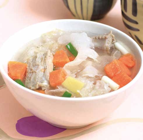 材料 猪排骨250克,干银耳5克,木瓜100克。