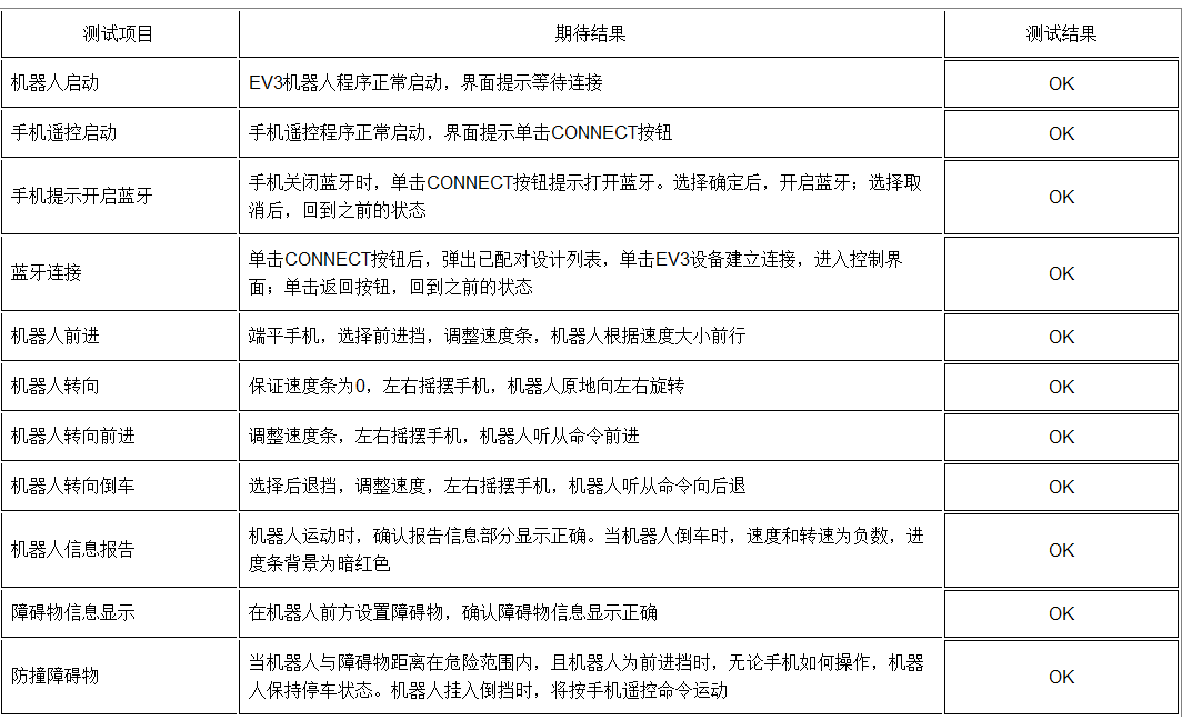 本书的撰写方式,实际上是一边写程序一边写文字的。所以,软件设计部分提到的程序也都是在写完硬件设计章节之后才写出来的。由于有了前面的调研程序,所以最初对自己程序的信心还是蛮大的,开发过程中几乎没有进行针对函数的测试,仅在完成蓝牙连接部分后,做了连接的测试。之后,就在全部开发完后,直接开始控制机器人测试。