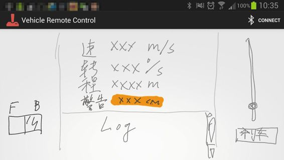 对小车的控制方式采用常见的手机赛车游戏的控制方式:提供两个按钮,分别是油门和刹车,整部手机可以当作方向盘左右摇晃控制左右转向。