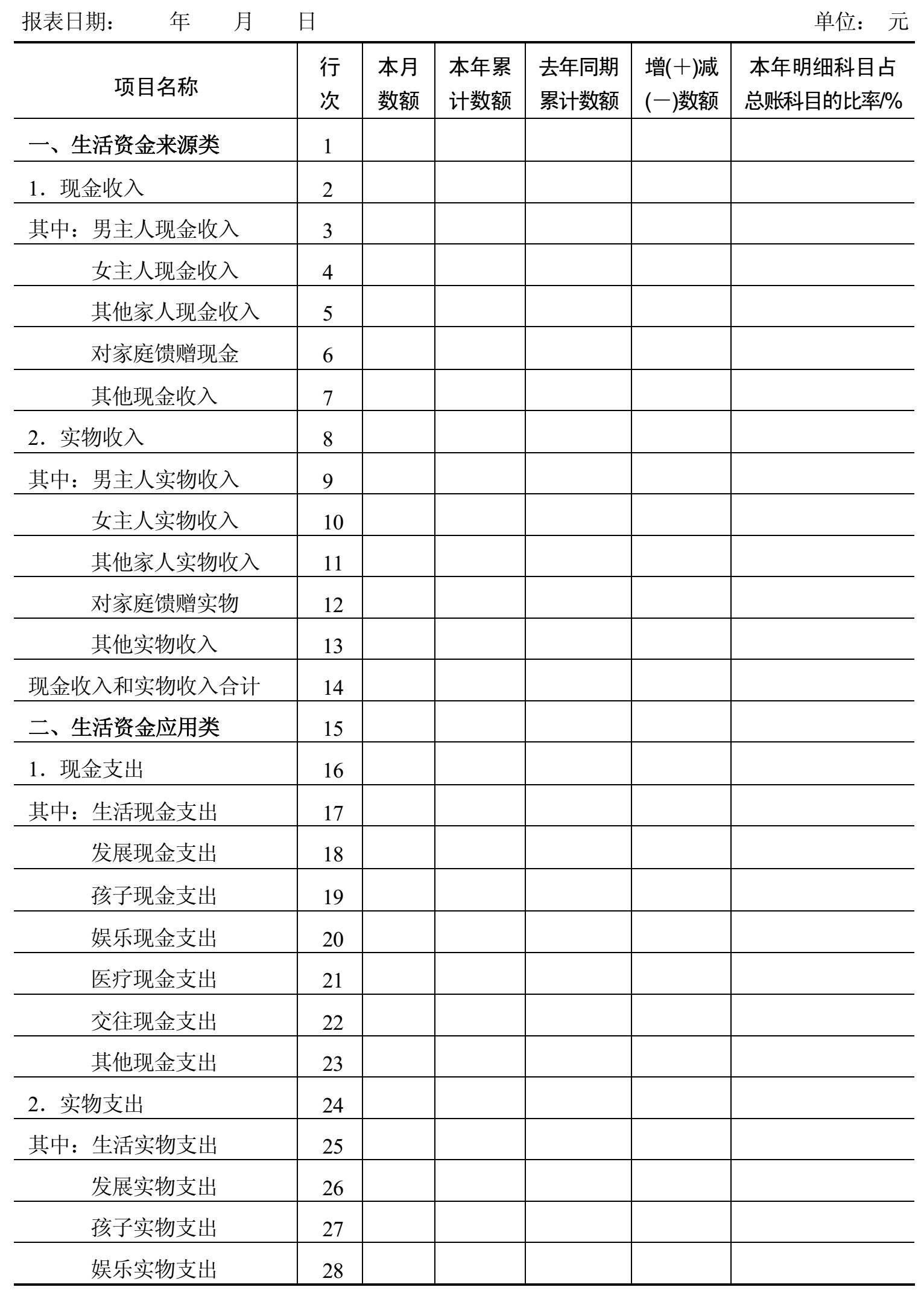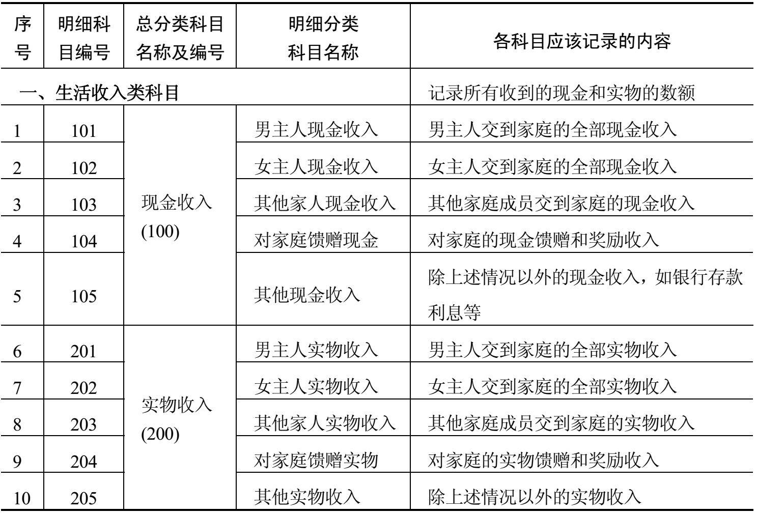 (1)“男主人现金收入”:记录男主人的工资、奖金等并交到家庭里的全部现金数额。