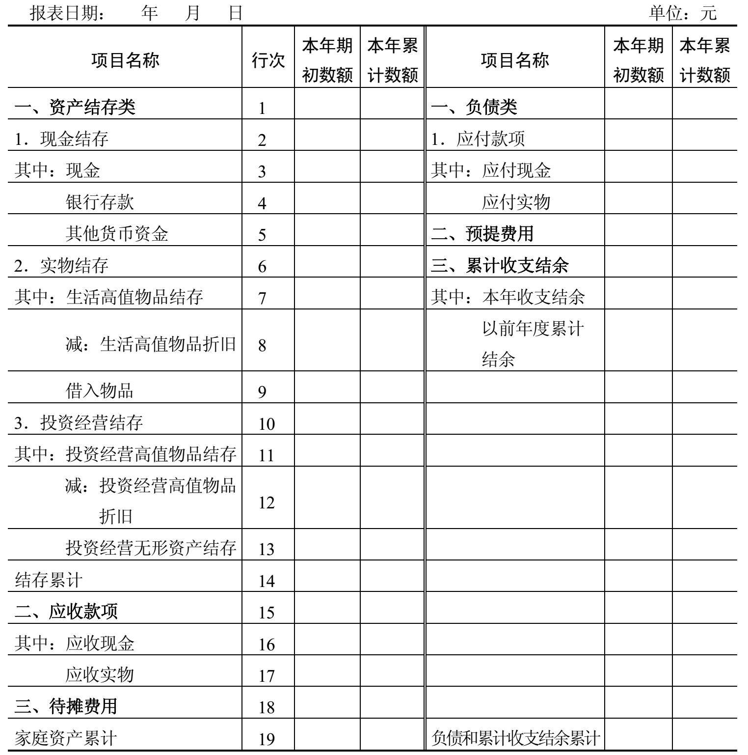 (2)“女主人实物收入”:记录女主人交到家庭里的全部实物数额。