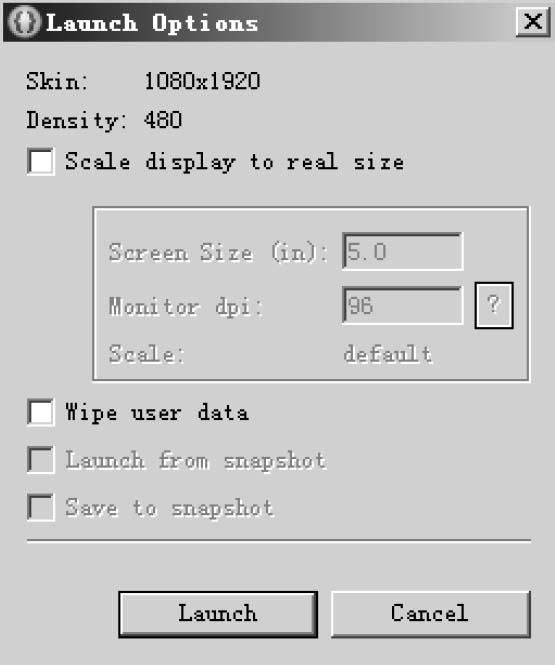 按钮后弹出Launch Options对话框,如图3-38所示。
