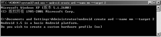 其中your_avd_name是需要创建的AVD的名字,CMD窗口如图3-36所示。