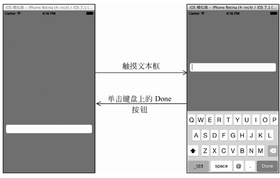 【示例2-17】 以下将在弹出键盘后,将挡住的文本框改变位置,具体步骤如下: