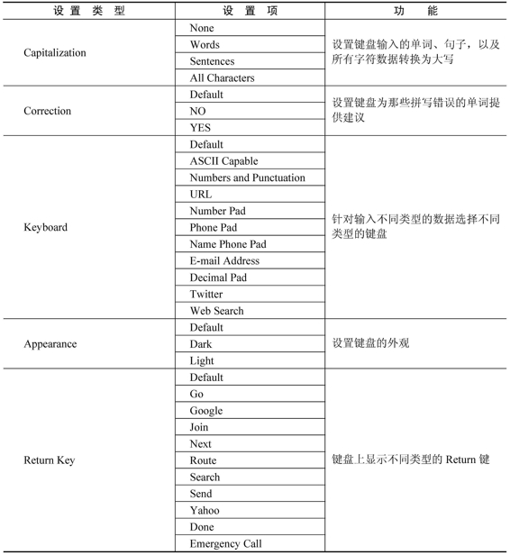 在iOS 7中,可以显示的键盘类型如表2-9所示。