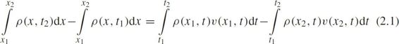 The conservation law of vehicles in an arbitrary stretch[ x 1 , x 2 ]of the road,over an arbitrary time interval[ t 1 , t 2 ],is written as: