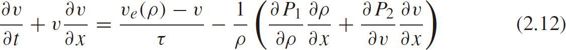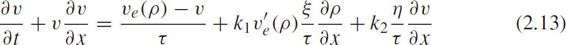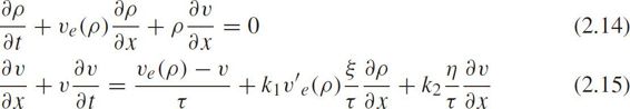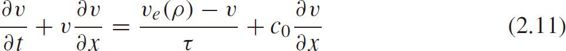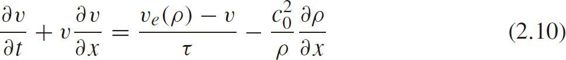where v = v ( x , t ), ρ = ρ ( x , t ), v e ( ρ )is the equilibrium velocity-density function, τ is the relaxation time, c 0 ≥0 is the substitution variable with the same unit as velocity,{ v + c 0 , v − c 0 }are the characteristic velocities. v + c 0 is larger than the macroscopic velocity of traffic flow,so that this model was criticized by Daganzo(1995c).