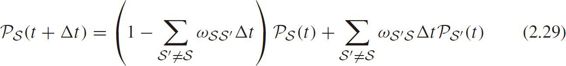 Furthermore,when traffic state and time are both discrete,suppose traffic state is S at time t ,according to the master equation in Eq.(2.29),at time t +△ t ,the probability that traffic still belongs to state S is