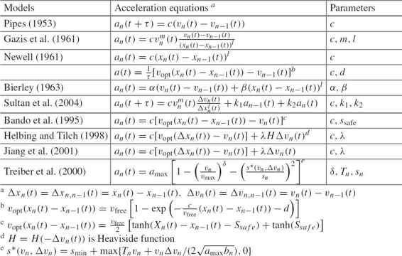 Table 2.2 Typical microscopic traffic flow models