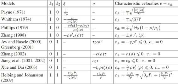 Table 2.1 Typical macroscopic traffic flow models