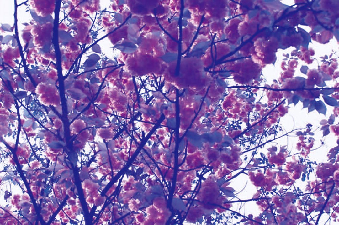 一树樱花,花枝团团坠坠。