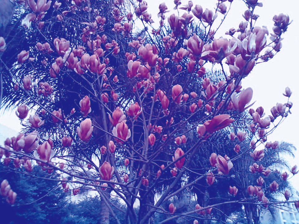 又一日,见晴空之下辛夷一朵朵在枝头,花姿端然夺目。