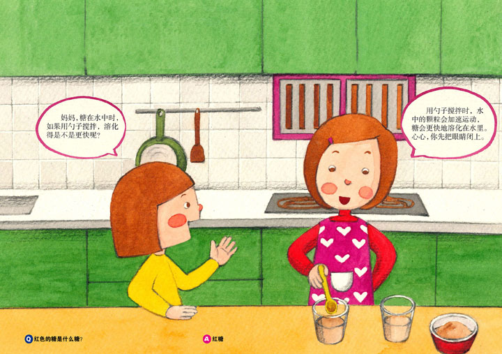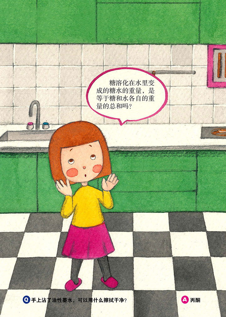 物质是由分子组成的。分子之间具有相互吸引的力,但是比起水分子之间的吸引力或糖分子之间的吸引力,水分子和糖分子之间的吸引力更强。所以将糖放入水中,糖会溶化在水里。这时,糖水中的糖是溶质,水是溶剂。溶质和溶剂之间的吸引力越强,溶化速度就越快。但是,如果在丙酮液体中加入盐,盐是不会溶化的。因为盐分子之间的吸引力比盐分子与丙酮分子之间的吸引力要强。