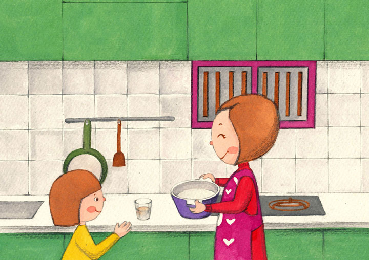 “今天,妈妈给你做你最爱吃的蛋糕好不好?”