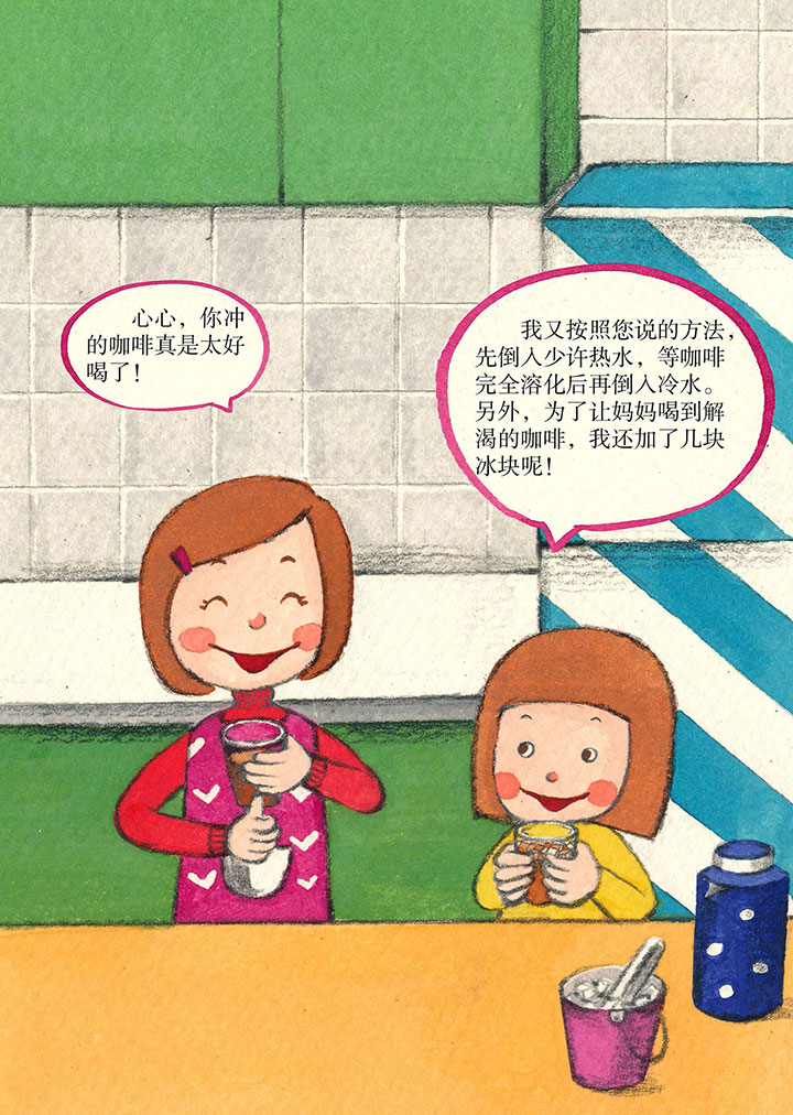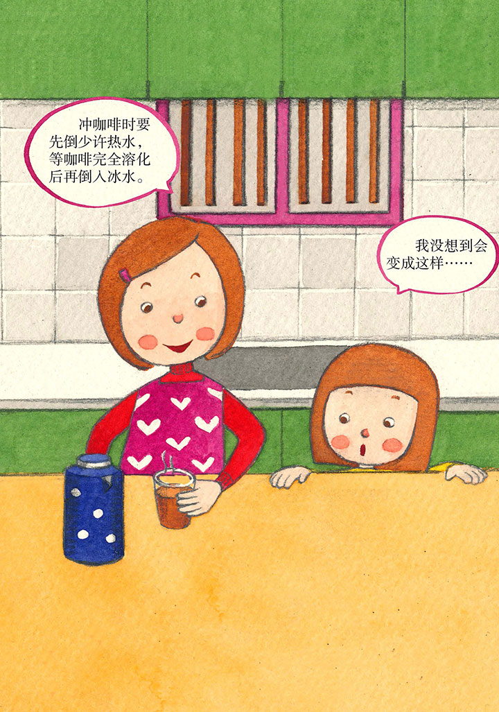 心心在杯子里放入了咖啡和糖,然后倒入了冰水,