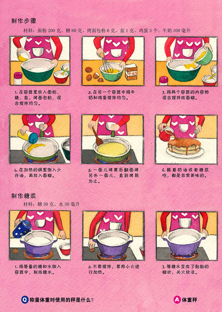 妈妈把做蛋糕所需要准备的材料和制作步骤