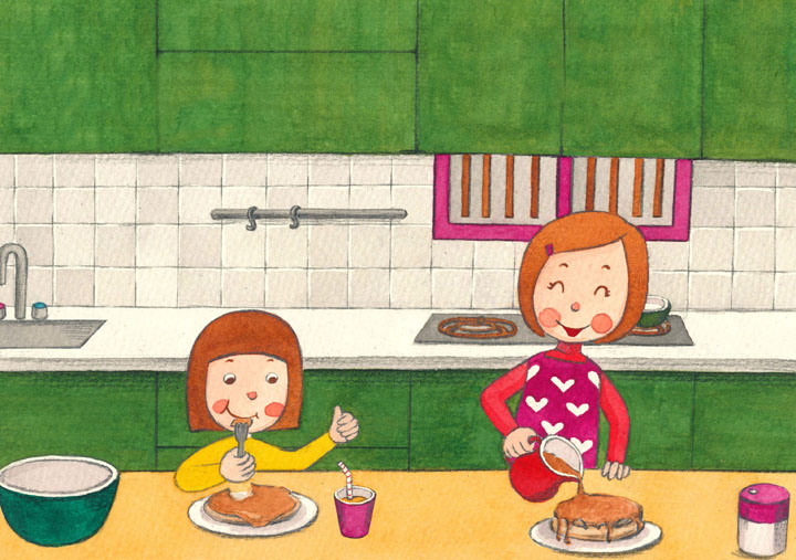 妈妈还在蛋糕上倒上了刚做好的糖浆,