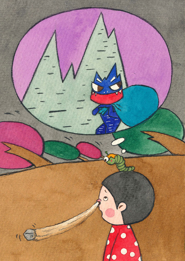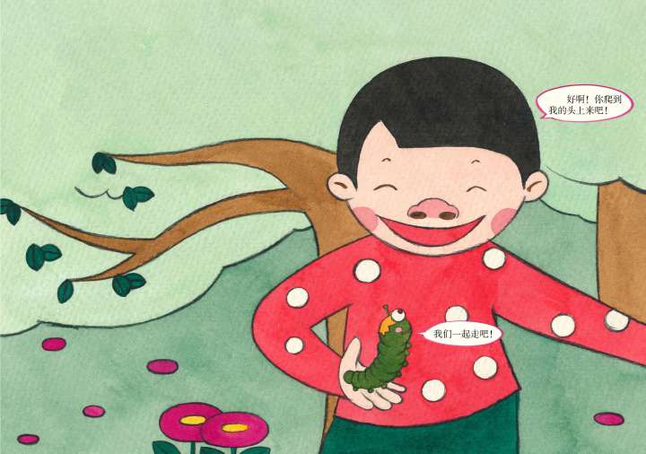 幼虫拍了拍身上的土,朝着小新大喊: