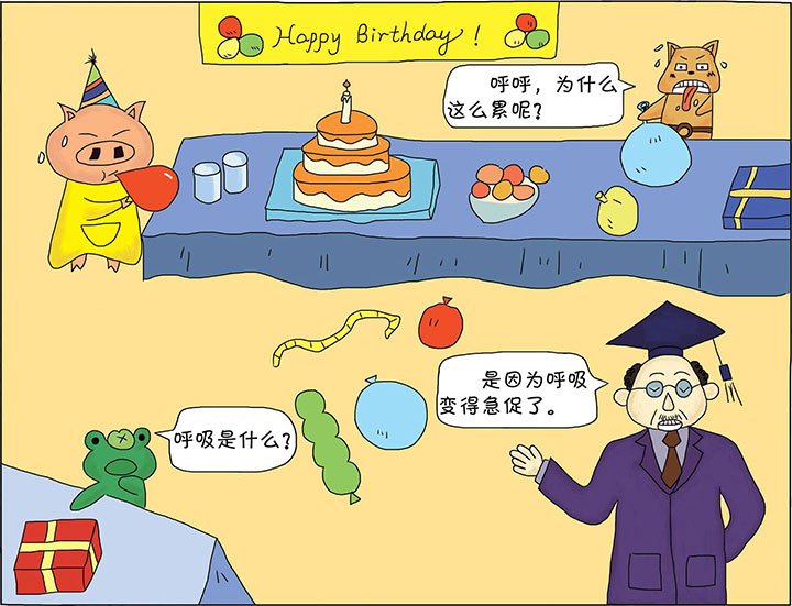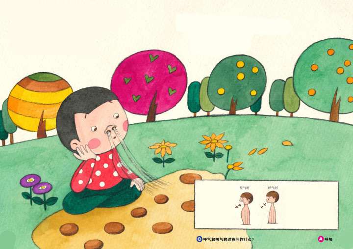 一般把人的呼气和吸气的过程叫作“呼吸”。呼吸时我们会吸入空气中的氧气,呼出体内的二氧化碳。氧气进入血液中,运送到全身各个部位,最后进入细胞,参与细胞内营养物质的分解。营养物质分解后,产生的二氧化碳通过血液运输到肺,随着呼气排出体外。