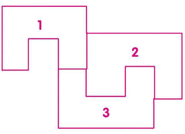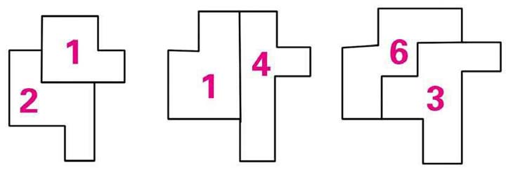 有3种拼法,其中1、2、3这3块要翻过来用。如图:
