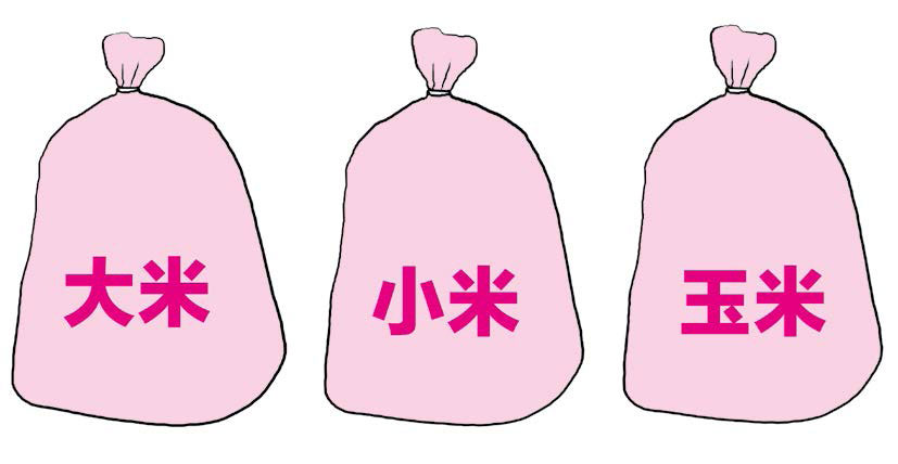 分别把大米、小米和玉米装在3个袋子里,它们的重量都在35斤到40斤之间。用一台最小刻度为50斤的磅秤,最多称几次就能称出小米、大米和玉米分别重多少斤呢?