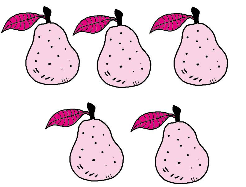 蕾蕾家里来了5个同学。蕾蕾想用鸭梨来招待他们,可是家里只有5个鸭梨,该怎么分呢?谁少分一份都不合适,应该每个人都有份(蕾蕾也想尝尝鸭梨的味道)。那就只好把鸭梨切开了,可是又不好切成碎块,蕾蕾希望每个鸭梨最多切成3块。于是,这就又面临一个新的难题:给6个人平均分配5个鸭梨,任何一个鸭梨都不能切成3块以上。蕾蕾想了一会儿,轻松地把问题解决了。小朋友,你知道她是怎么分的吗?