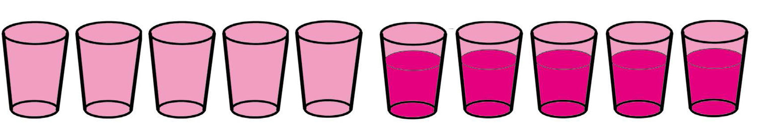 有10只杯子,右边5只装有水,左边5只没有装水。移动4只杯子,就可以将盛水的杯子和空杯子相间,现在,要求只移动2只杯子,也要达到同样效果,小朋友,你能做到吗?