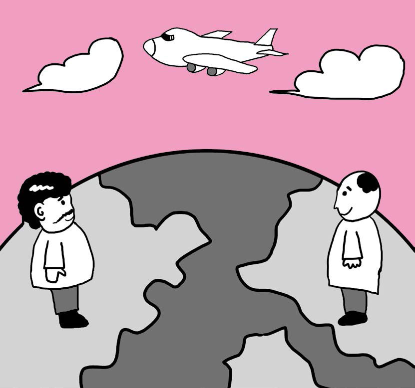赤道上有A、B两座城市,它们正好位于地球上相对的位置。分别住在这两个城市的甲、乙两位科学家每年都要去南极考察一次,但飞机票实在是太贵了。围绕地球一周需要1000美元,绕半周需要800美元,绕1/4周需要500美元,按照常理,他们每年都要分别买一张绕地球1/4周的往返机票,一共要1000美元,但是,他们却想出了一条妙计,两人都没有花那么多的钱,就完成了考察。小朋友,你猜他们是怎么做的呢?假设机票像公交车票一样不记名。