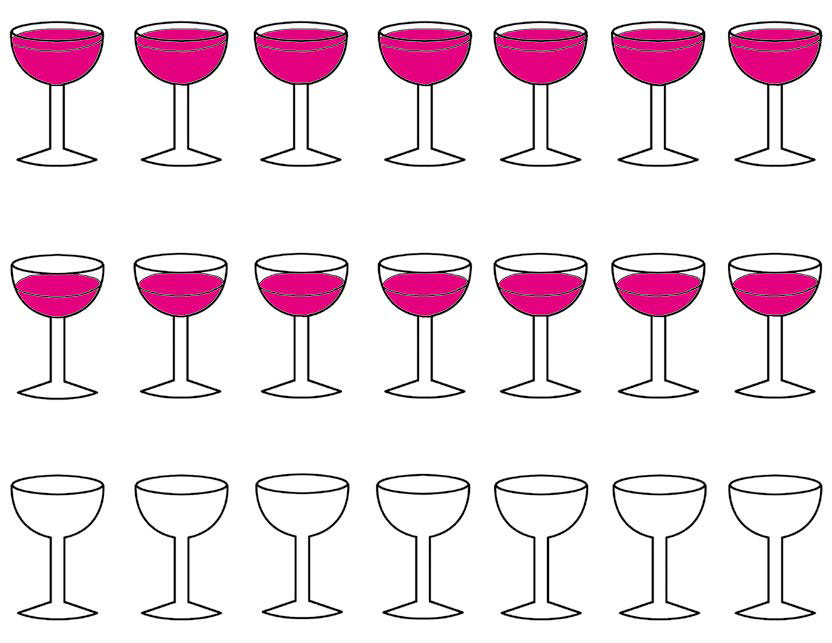 有7个满杯的果汁、7个半杯的果汁和7个空杯子,要平均分给3个人,小朋友,你知道该怎么分吗?