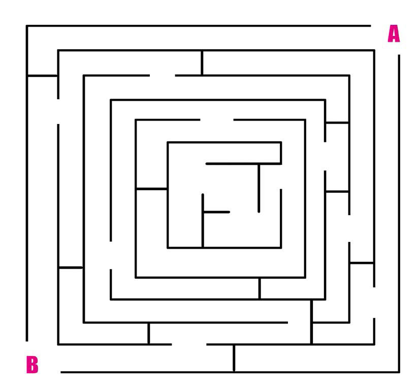 这是一个非常简单的迷宫,小朋友,想一想,你能从A走到B吗?又能走出多少种路线呢?