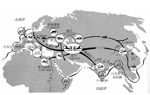),他们必定是一步一步地从一个绿洲推进到另一个绿洲,经过中国新疆到达黄河流域,并征服了居住在那个地区的新石器时代农民。