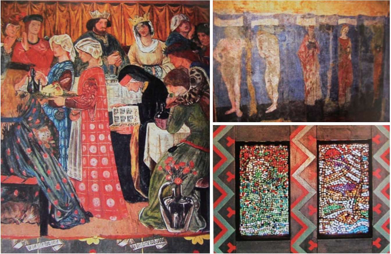 ④ 使用传统的自然材料:拉斯金对钢铁、玻璃等新型建筑、设计材料感到厌恶,为了表示对新材料的反对,他曾以辞职来抗议在牛津博物馆建筑中使用钢铁。他认为设计应该像哥特式那样忠实于材质本身的特点,反映材质的真实情感。拉斯金曾把用钢铁等廉价材料来模仿古典风格的手段斥之为犯罪。