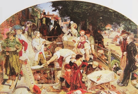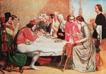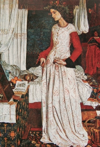 莫里斯从牛津大学毕业之后,没有立即工作。拉斯金的思想,尤其是拉斯金在《威尼斯的石头》这部著作中对哥特式建筑与自然风格精美的描述,激起了他对哥特式建筑的浓厚兴趣,便与同学爱德华·伯恩·琼斯(Edward Burne-Jones,1833—1896,日后的合伙人)一同游历法国,研究哥特式建筑。之后进入专门从事哥特风格建筑设计的乔治·斯特里特(George Edmund Street)设计事务所从事建筑设计。在这期间他又接触了拉斐尔前派(Pre-Raphaelite,也称前拉斐尔派)的绘画。拉斐尔前派的唯美、细腻的艺术风格一度使他着迷(图2-2至图2-4)。1857年莫里斯离开斯特里特事务所,加入了由约翰·米莱、但丁·罗塞蒂和霍尔曼·亨特三人发起的“拉斐尔前派兄弟会”。拉斐尔前派的思想主要是反对当时绘画中出现的机械主义风格倾向以及程式化的学院派风格。他们崇尚中世纪的古典主义画风并讴歌自然,注重细节,主张真实、诚挚的新艺术风格。这一思想与拉斯金的主张不谋而合,同时也符合莫里斯的审美期望。受众多设计师、理论家以及艺术家潜移默化的影响,莫里斯逐渐形成了自己的设计思想和审美趣味。诸如: