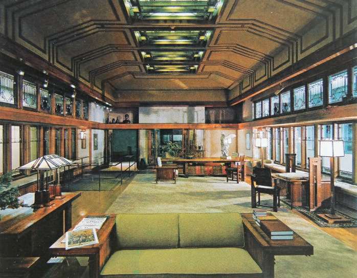 对于欧洲来说工艺美术运动的目的有两个方面,即探索一种既能抵御毫无美感的工业化风格,同时又能反对复杂矫饰的维多利亚式的设计。但美国不同,由于美国是一个新兴国家,没有欧洲悠久的历史和文化,无论是旧事物还是新事物都有存在和发展的空间,所以,美国的设计界既没有对工业化风格的恐惧,也没有对繁琐的古典样式的厌恶。他们之所以引入工艺美术运动只是希望能找到一种突破欧洲单一传统风格影响的设计形式。于是他们在接受工艺美术运动风格的同时又兼收了东方尤其是日本传统建筑的设计形式,并与美国中西部广袤的平原风光相结合而产生了一种新的建筑风格,这就是由弗兰克·劳埃德·赖特(Frank Lioyd Wright,1867—1959)、查尔斯兄弟(Brothers Charles,1868—1957)以及亨利(Henry,1870—1954)等建筑师开创的“草原风格”