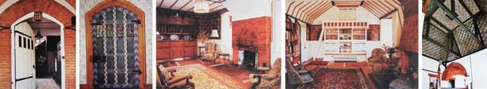 莫里斯的新房摒弃了当时中产阶级惯用的对称式布局和粉饰的维多利亚风格,而是根据功能需求将住宅平面按照L形布局,使每个房间都能自然采光。在建筑材料上也没有采用当时流行的昂贵石材,而是选用本地产的红砖、红瓦,不加粉饰,建筑落成后,因简洁质朴的红褐色,而得名“红屋”(Red House)(图2-5、图2-6)。在“红屋”的外观以及室内的细节处理上,韦伯大量运用哥特式风格的处理手法,如塔楼、尖券入口、室内顶棚以及楼梯的栏杆、扶手等,反映了新艺术对哥特式的迷恋(图2-7、图2-8)。典雅的细节处理,处处透射出英国传统民居建筑和中世纪建筑的风韵。莫里斯本人亲自设计了住宅周围的景观。红屋内部的家具、灯具、地毯、绘画和壁纸等设施是由莫里斯和韦伯、罗塞蒂以及伯恩·琼斯共同设计完成的。“红屋”建成以后,因自然流畅的设计,简洁朴素、毫无虚饰的立面,加之对装饰结构的处理和地域材料的运用等因素,而成为英国工艺美术运动的里程碑。罗塞蒂曾如此描述“红屋”:“与其称它是一座房子,倒不如说它更像一首诗。”伯恩·琼斯更是对其赞美有加,他称“红屋”是“世界上最美的房子”。事实上,“红屋”体现出的“整体艺术”、“自然形式”和“地域精神”等观念不仅是工艺美术运动早期哲学核心的经典范例,同时也成为后来发端于法国的新艺术(Art Nouveau)和装饰艺术(Art Deco)以及出现于奥地利的分离派等其他许多设计运动的典范。