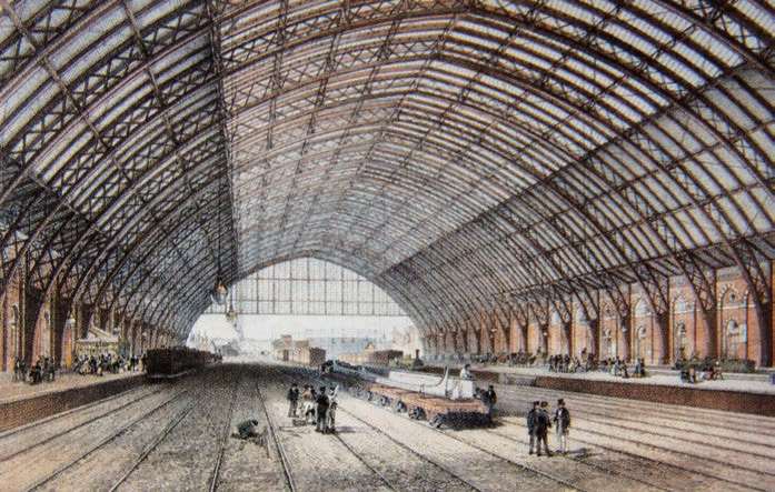 ① 新建筑物的出现:随着工业革命的发展以及世界贸易的日趋频繁,各国之间开展了大规模的商品交流活动。18世纪之前的手工业作坊以及传统的运输方式和道路交通显然已不能满足新的需求。为了适应新形势的要求,新式的工厂和交通技术设施,如大型工厂、桥梁、隧道、铁路、火车站以及轮船、港口等相继出现(图1-50)。