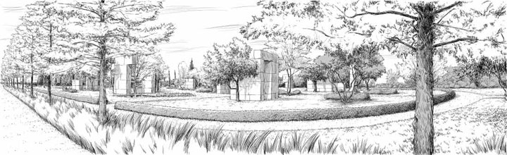 树博物馆被构思为一个椭圆形的露天博物馆,划分为一个个小空间,每个空间都具有自己的氛围和特点,树种来自Enzo Enea的收藏,Enzo Enea是一名瑞士景观设计师和著名的树种收藏者。博物馆的第一使命就是珍藏珍稀树种,展示出树种的美丽和稀有性。接下来,在更深层次上, Enzo Enea的收藏会帮助参观者形成对于生命的原始属性的认知,比如时间和空间观念,以及这些属性是以何种方式内含在这些古老、珍贵树种的元素里的。