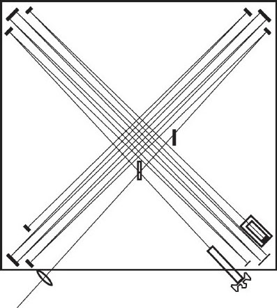 然而一系列实验不支持这个观念。其中阿尔伯特·迈克耳孙和爱德华·莫雷于1887年在俄亥俄的克里夫兰的凯思应用科学学校进行的实验最为仔细,也最为精确。他们对相互垂直的两束光的速度进行比较。随着地球绕轴自转以及绕日公转,仪器以变化的速率和方向通过以太运动(图1.2)。但是迈克耳孙和莫雷在两光束之间没有找到周日或周年的变化。不管人们在哪个方向上多快地运动,光似乎总是以相同的速率相对于它的所在地运动(图1.3,见第8页)。