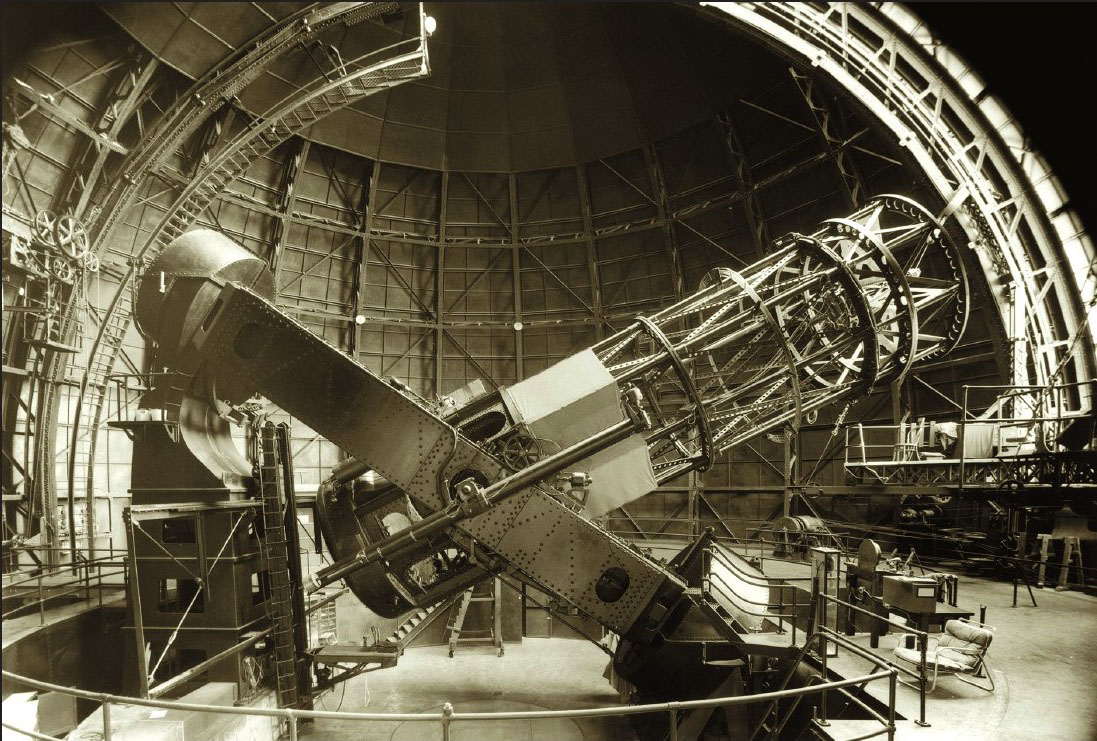 威尔逊山天文台100英寸(1英寸=2.54厘米)胡科望远镜。