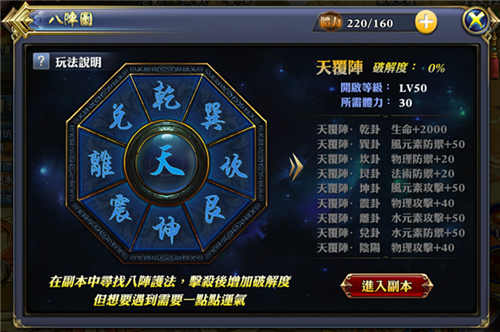 第一:八陣圖是單人副本,五十級以上的玩家可進入,每日不限次數挑戰。