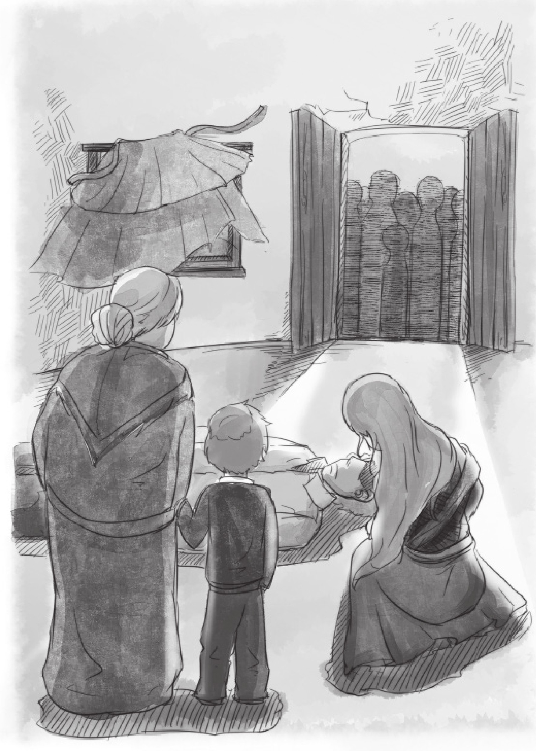 外婆推开我,跑到门口喊着:“请你们走开吧!她要生孩子了,这不是霍乱。请你们走开吧,好心的人们!”