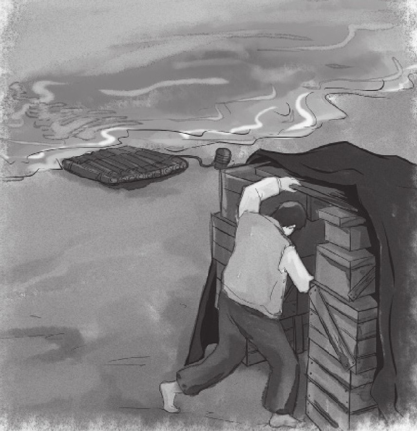 这时,我把所有的注意力都集中在了如何保护自己的事情上,防备野人或者是野兽的袭击。我想了很多办法,考虑建造什么样的住所,是在地上挖个洞,还是搭个帐篷呢。最后,我决定两种都做。