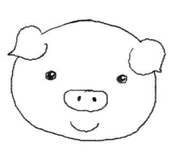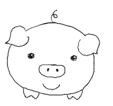 例如小猪外形给人的感觉就是圆圆胖胖的,所以就可以先画出头部的轮廊,再画它的五官和四肢等比较小的部分。